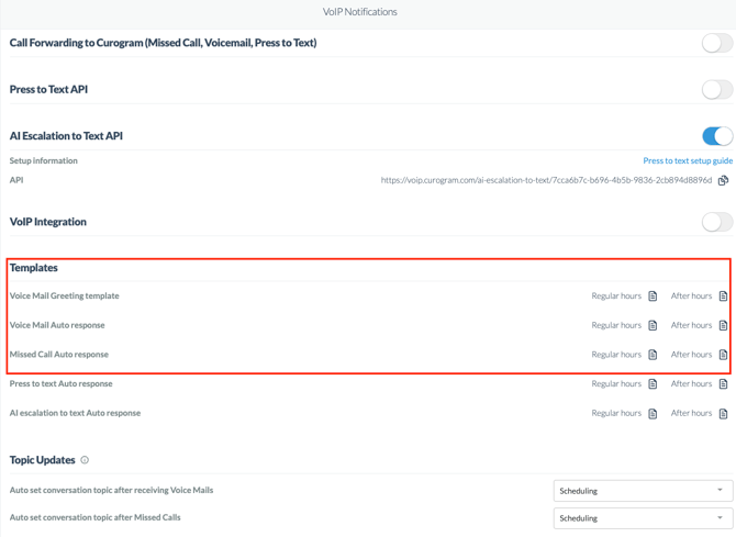 Some practices do not have advanced phone systems or IVR capabilities that allow patients to choose between receiving a text or leaving a voicemail. Call Forwarding to Curogram enables these practices to offer Missed Call Auto Response, Voicemail-to-Text, and Press-to-Text functionality with minimal configuration.